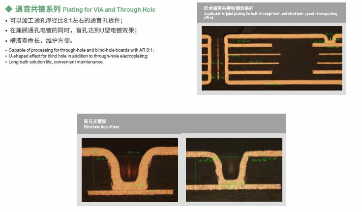 垂直連續(xù)電鍍VCP是為垂直連續(xù)電鍍?cè)O(shè)備而開(kāi)發(fā)的酸性銅鍍體系,適應(yīng)多種板型的電鍍需求,適用高電流密度的通孔電鍍,兼顧沉銅及有機(jī)導(dǎo)電膜等直接電鍍,適用通盲共鍍。
